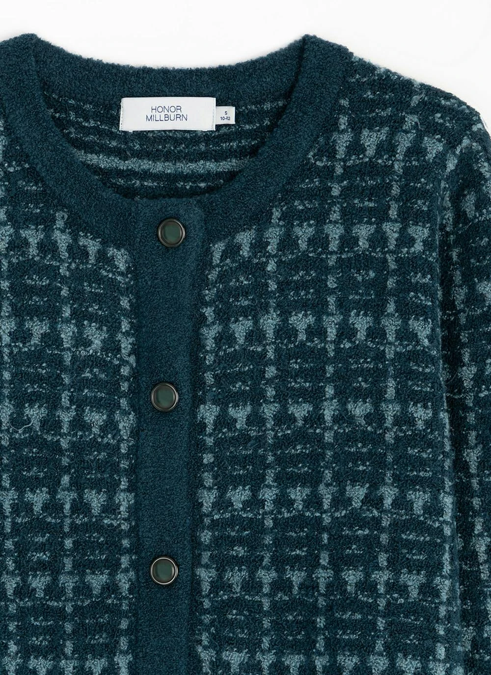 Button up round neck cardigan with long sleeves and two functioning front pockets with button detailing and a checkerboard knit pattern. Team with Honor Millburn Collection trousers and skirts for a lovely fresh look for the new season.
