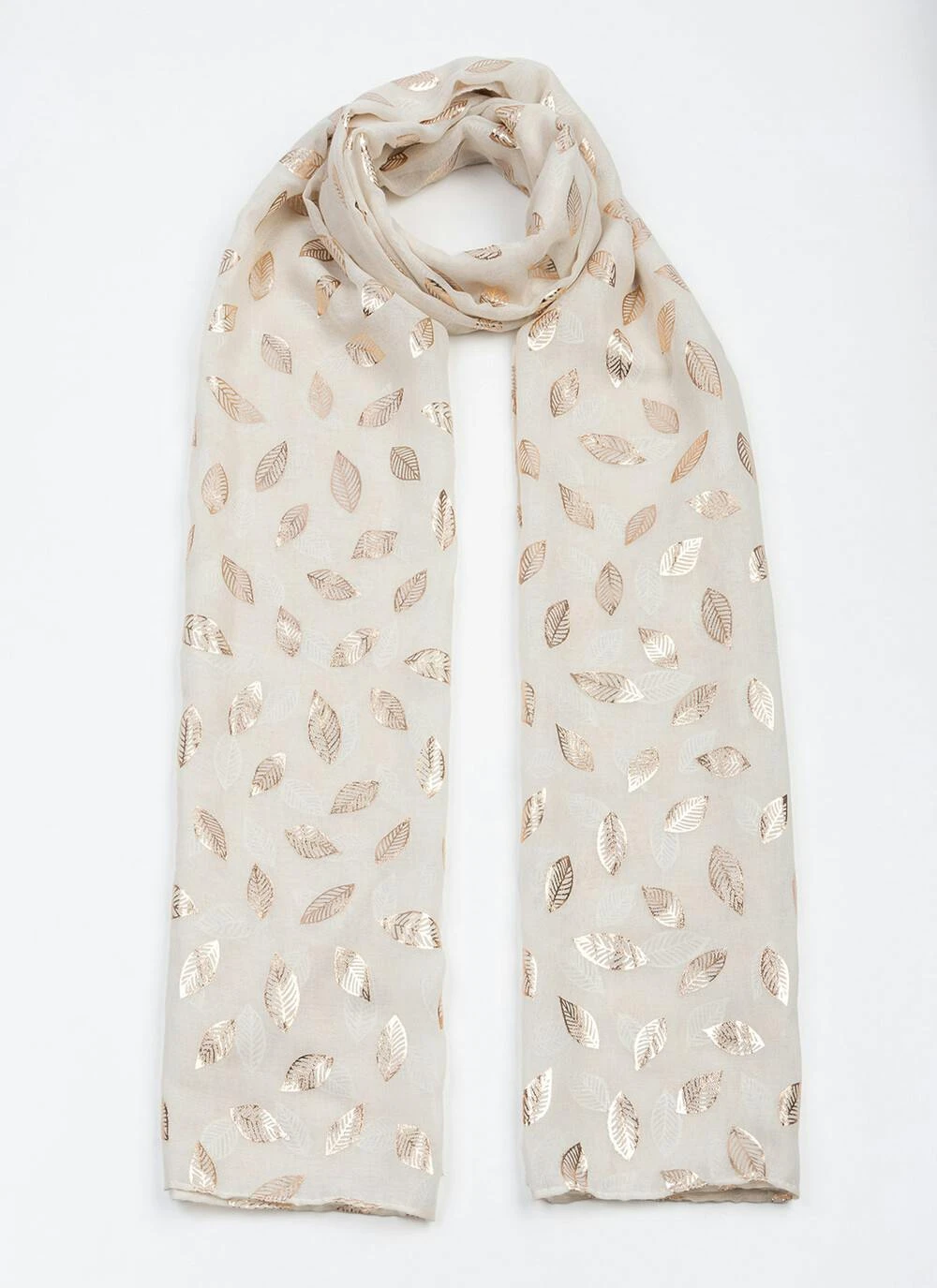 Accessorise your outfit in style with this lightweight scarf featuring a delicate shimmering foil print.